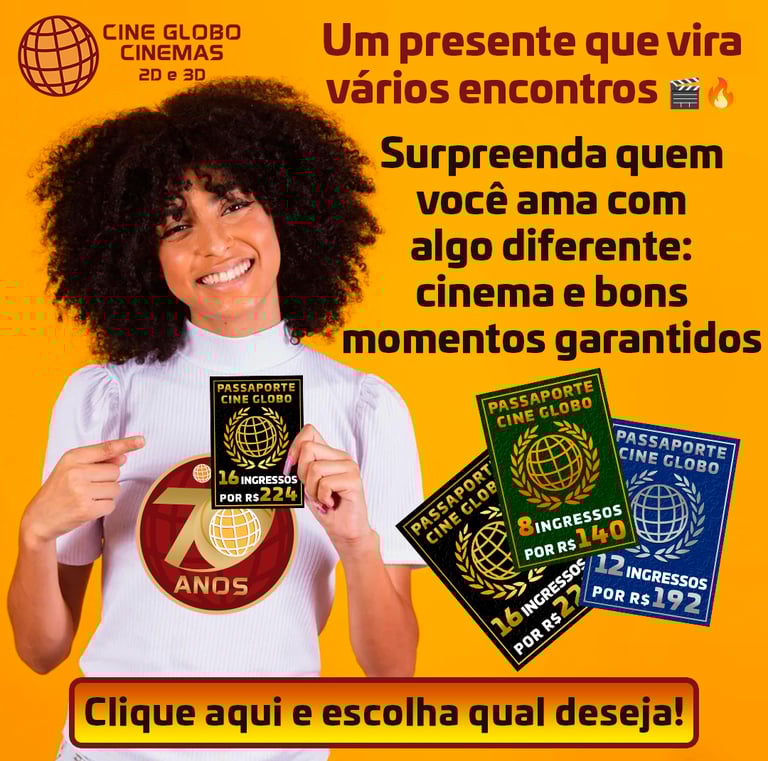 O Cine Globo, oferece filmes para toda a família, com conforto, tecnologia de ponta e uma programação diversificada.